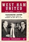 Match no. 41. Manchester United clinched the League Championship with this thumping win, having gone 3-0 up after 15 minutes. Law (2 - 1 pen), Best, Charlton, Crerand and Foulkes were their scorers. Their celebrating fans spilled all over the train tracks at Upton Park station afterwards causing the power to be turned off and forcing me and my mate to walk to Stratford station to get the tube from there, arriving home some 2 hours late.