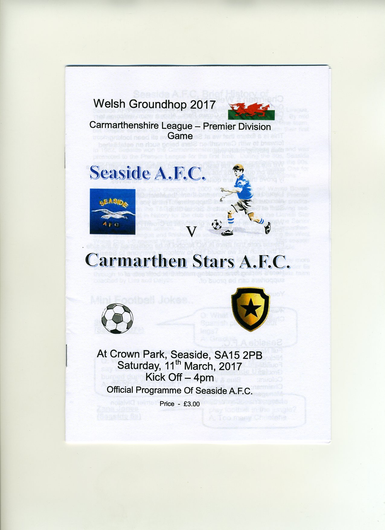 Programme for Seaside AFC v Carmarthen Stars AFC
