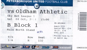 Ticket for Peterborough United v Oldham Athletic