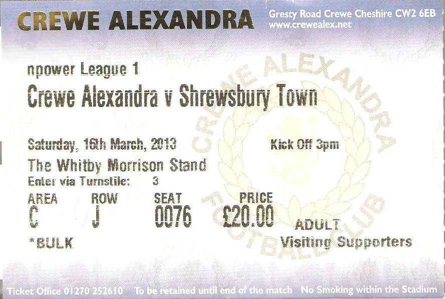 Ticket for Crewe Alexandra v Shrewsbury Town