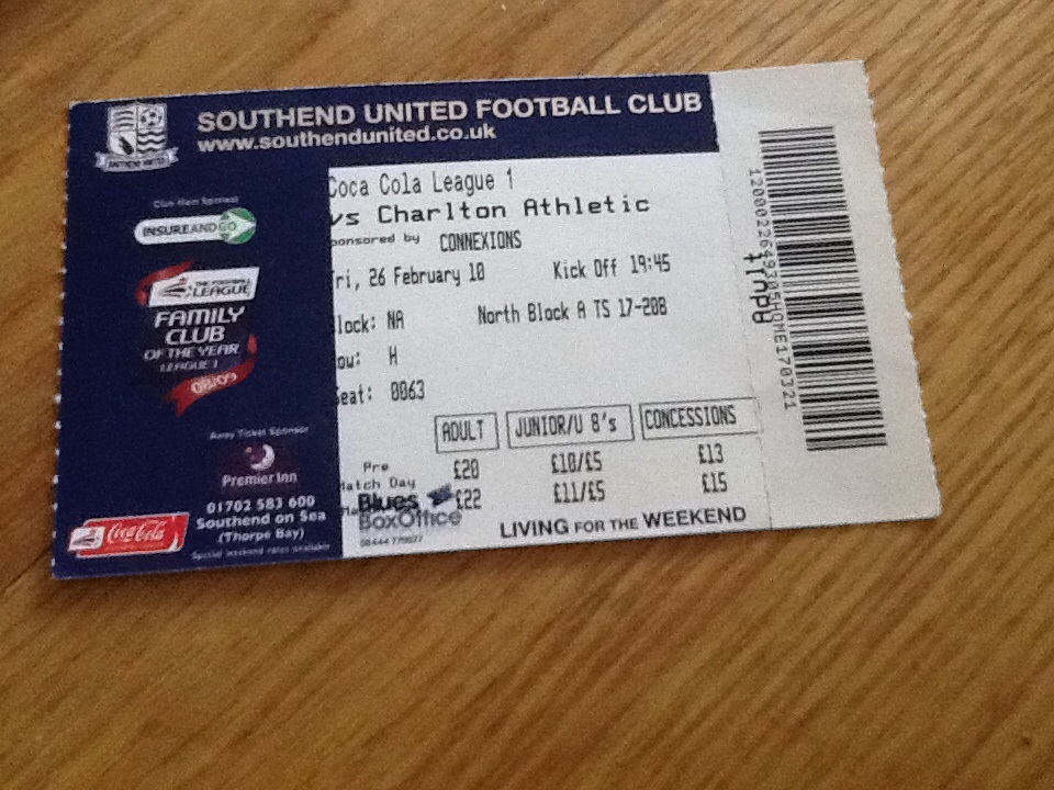 Ticket for Southend United v Charlton Athletic