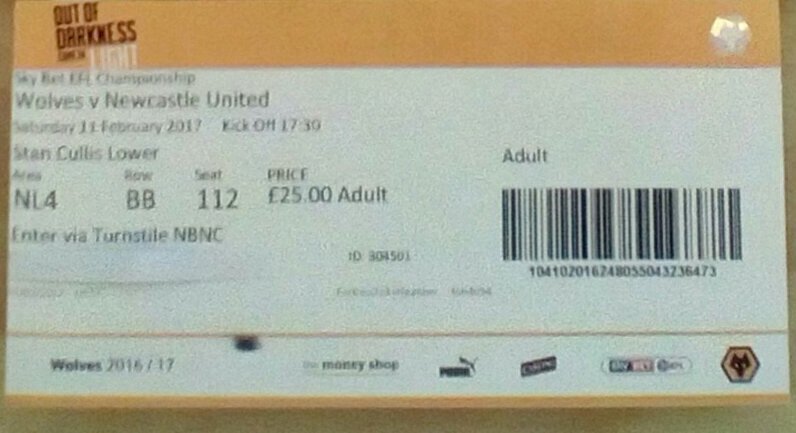 Ticket for Wolverhampton Wanderers v Newcastle United