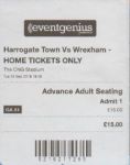 Eyed up this fixture at the start of the season and took a day off work to tick another ground off. I''d seen Harrogate at Nuneaton in 2015 which ended goaless and again last year at Brackley 0-0 so this was a hattrick of games without goals! Left for the game later than planned due to a couple of unforeseen problems deciding to travel via the M65 and A59 the later was a nice change to the nightmare that is the M62. The game had a bit more riding on it with potential winners having the chance to go top as it was second v third but that would also need Orient to drop points, with Harrogates capacity being quite small I half expected the game to be all ticket but research only showed that the visitors wouldn''t be given any seats. Not being a fan of etickets I rang the club and was told they were the only option I purchased my ticket for collection but actually found it was a bit more disappointing than the print at home version looking more like a receipt. After picking up my ticket I walked down to Harrogate Railways ground which took about 15 minutes, with a bit more time I might have explored the town but decided to grab some food and a pint at a nearby pub(homemade chilli and chips which was nice). As for the game Harrogate shaded possession and half chances but didn''t really test the reds keeper whereas Wrexham had at least three clear cut chances from Fondop -Talom but was thwarted by man of the match Belfield. The result saw both sides drop a place with Salford going second after beating Hartlepool 3-0