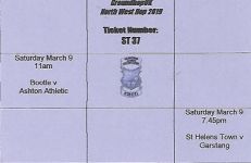 BOOTLE SCORERS : PEERS (10,18) COX (72) JONES (90). ASHTON SCORERS : GILCHRIST (22) MUNRO (50).. ADMISSION £5 PROGRAMME £2 BADGE £3.50.