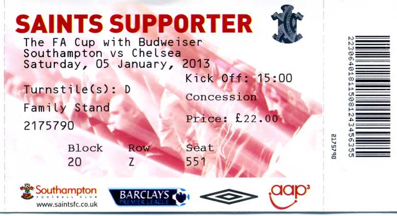 Ticket for Southampton v Chelsea
