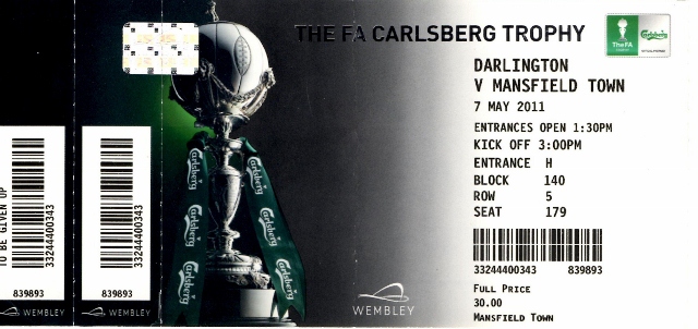 Ticket for Mansfield Town v Darlington 1883