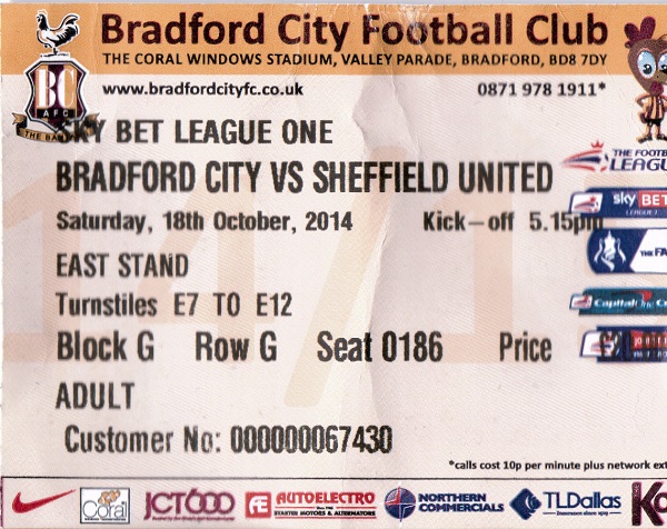 Ticket for Bradford City v Sheffield United