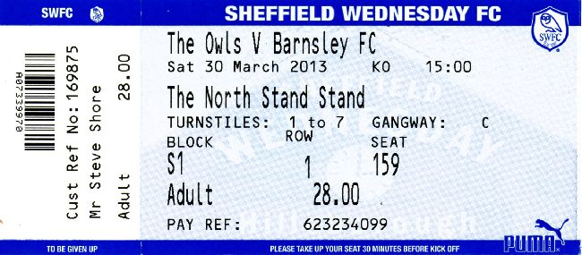 Ticket for Sheffield Wednesday v Barnsley