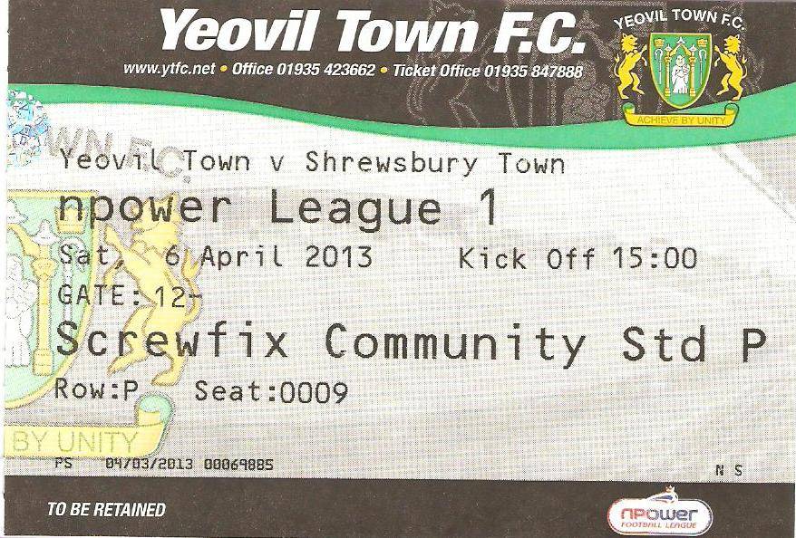 Ticket for Yeovil Town v Shrewsbury Town