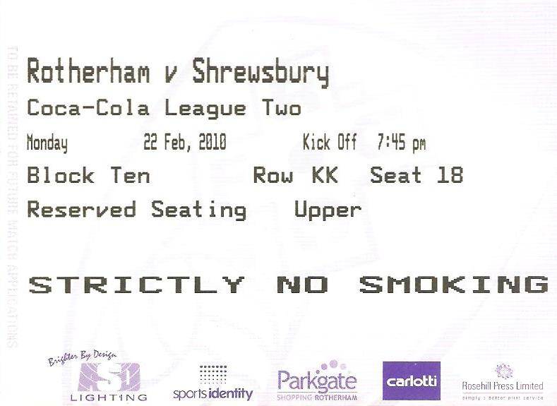Ticket for Rotherham United v Shrewsbury Town