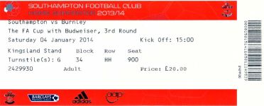 Amazing game in the rain, Southampton 2-0 up and coasting with two great goals, 2nd half, Burnley ripped them apart with two quick goals, 2-2. Then Southampton got back in control at 4-2, but they let a goal in for some extra excitement at the end, lovely ground and we had a great time on the trains getting there from Kerrys.
