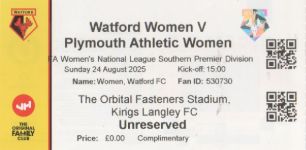 Whilst good to have a proper ticket bizarrely Argyle are listed as athletic and it also states it''s a complimentary when an adult ticket cosy £8 and senior £6. The attendance was not made public on any site i found including both clubs website which makes you think if theirs scope to fudge the gates. Both goals were scored by Madison Perry one in each half the second a fierce shot into the roof of the net from ten yards.