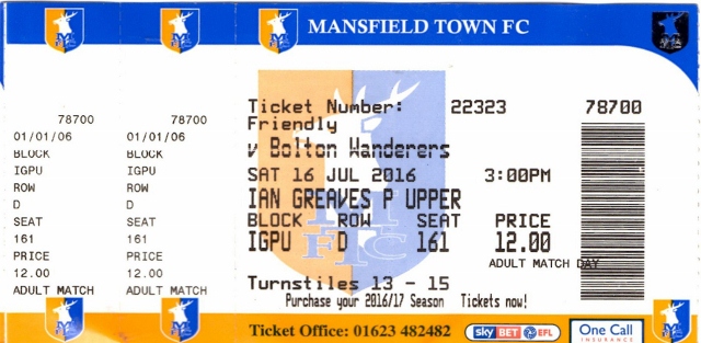 Ticket for Mansfield Town v Bolton Wanderers