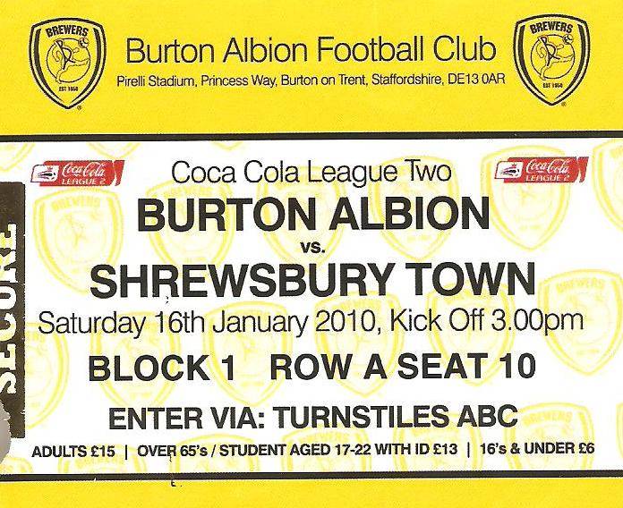 Ticket for Burton Albion v Shrewsbury Town