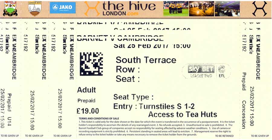 Ticket for Barnet v Cambridge United