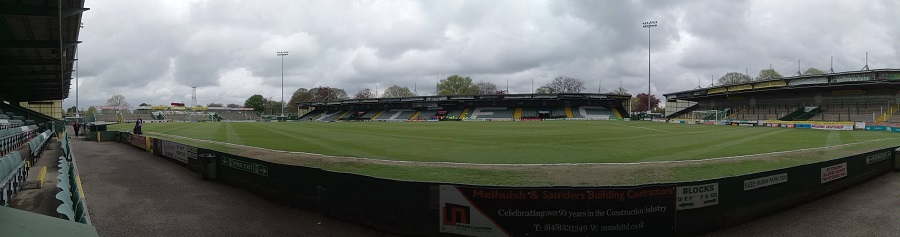 A panoramic view of Huish Park.