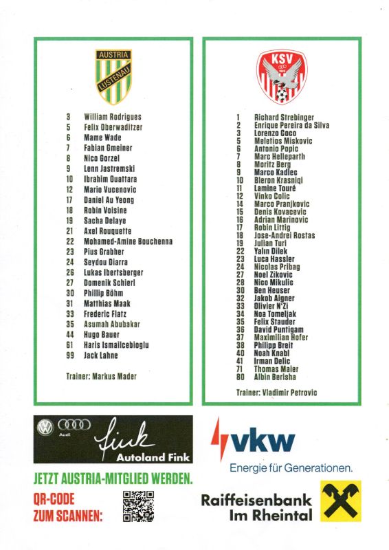 Programme for SC Austria Lustenau v Kapfenberger SV