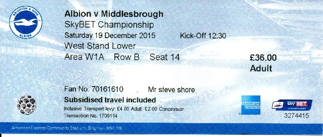 Ticket for Brighton & Hove Albion v Middlesbrough