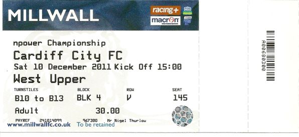Ticket for Millwall v Cardiff City