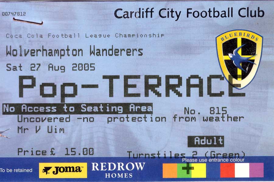 Ticket for Cardiff City v Wolverhampton Wanderers