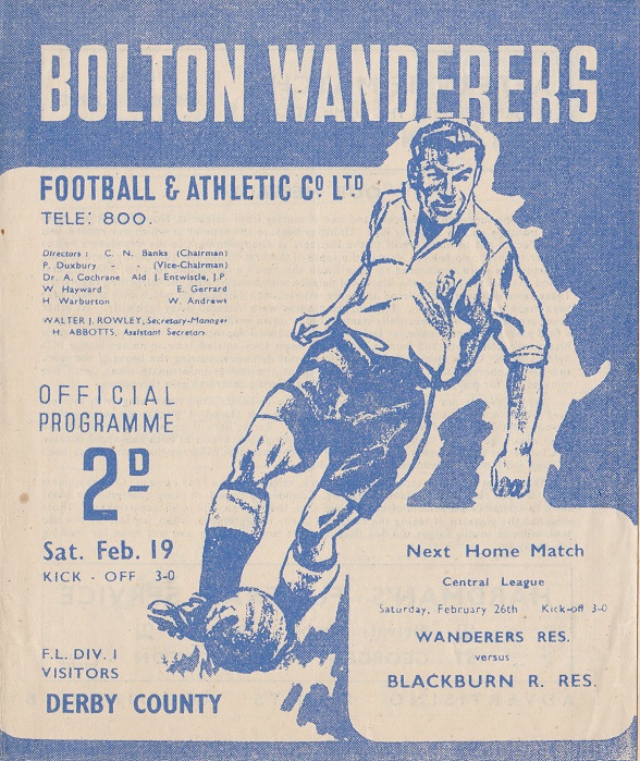 Programme for Bolton Wanderers v Derby County