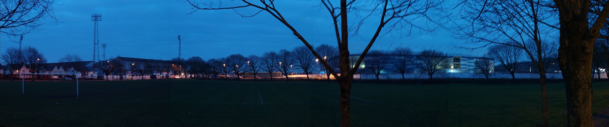 Ninian Park is on the left, and the new stadium is behind the trees on the right. Not sure who uses the pitch in the foreground.